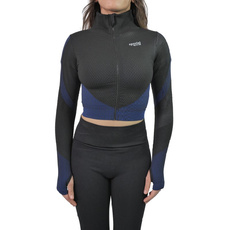 Felpa Sportiva Corta Special Sport Nero Blu Fitness Palestra Full Zip FELSSNB