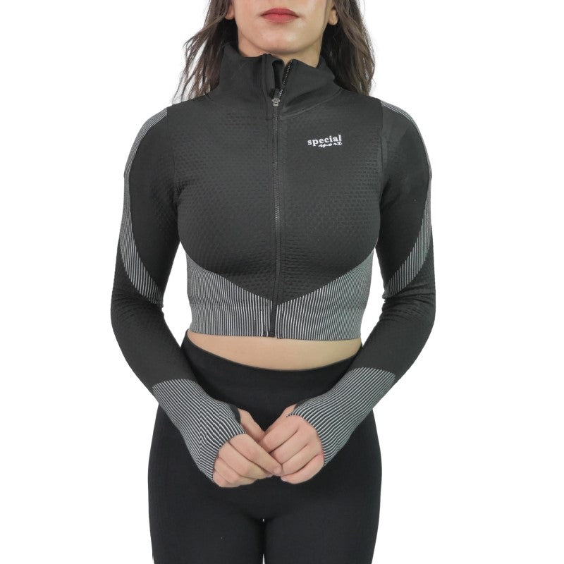 Felpa Sportiva Corta Special Sport Nero Grigio Fitness Palestra Full Zip FELSSNG