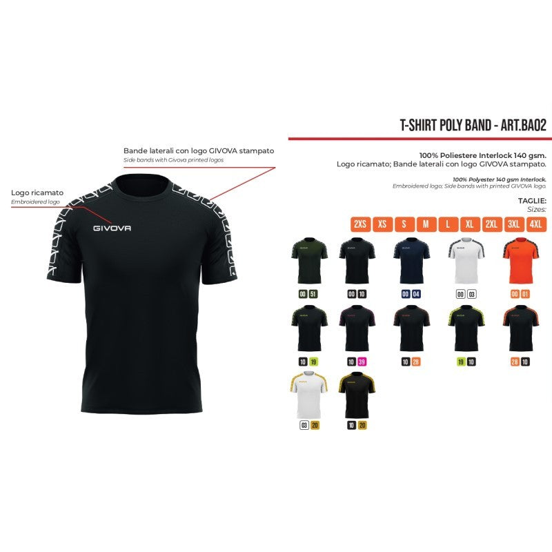 T-Shirt Givova POLY BAND BA02 Maglia Fitness Unisex Arancio Fluo Nero BA022810