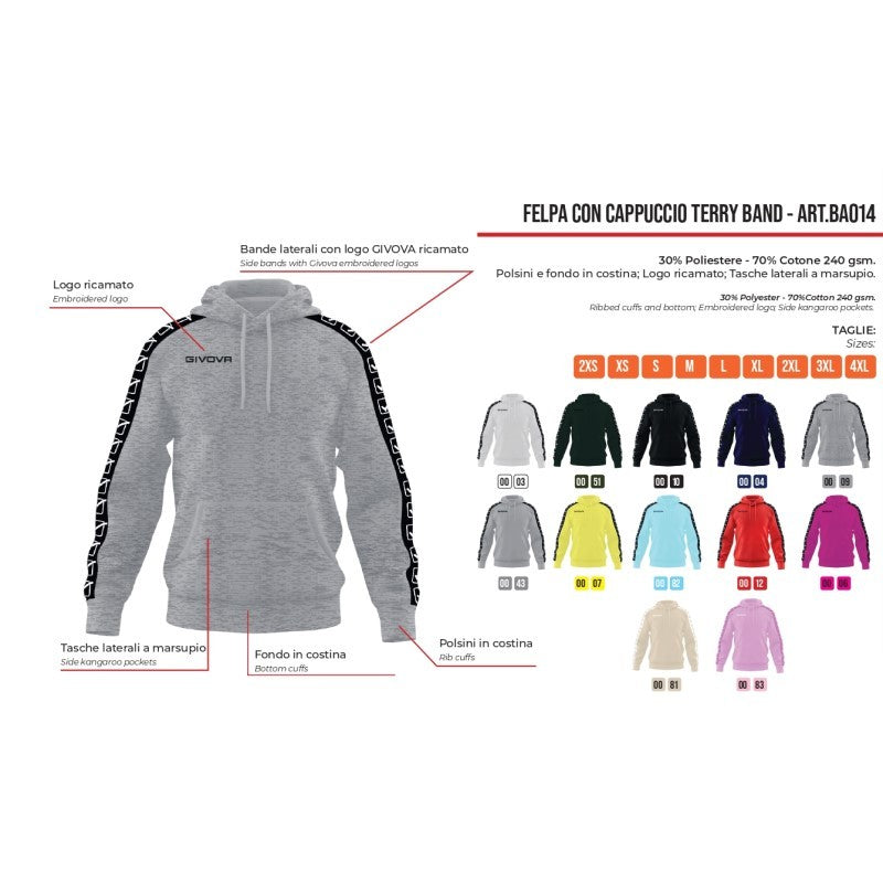Felpa con Cappuccio Givova Terry Band BA014 Cotone Unisex Nero BA0140014