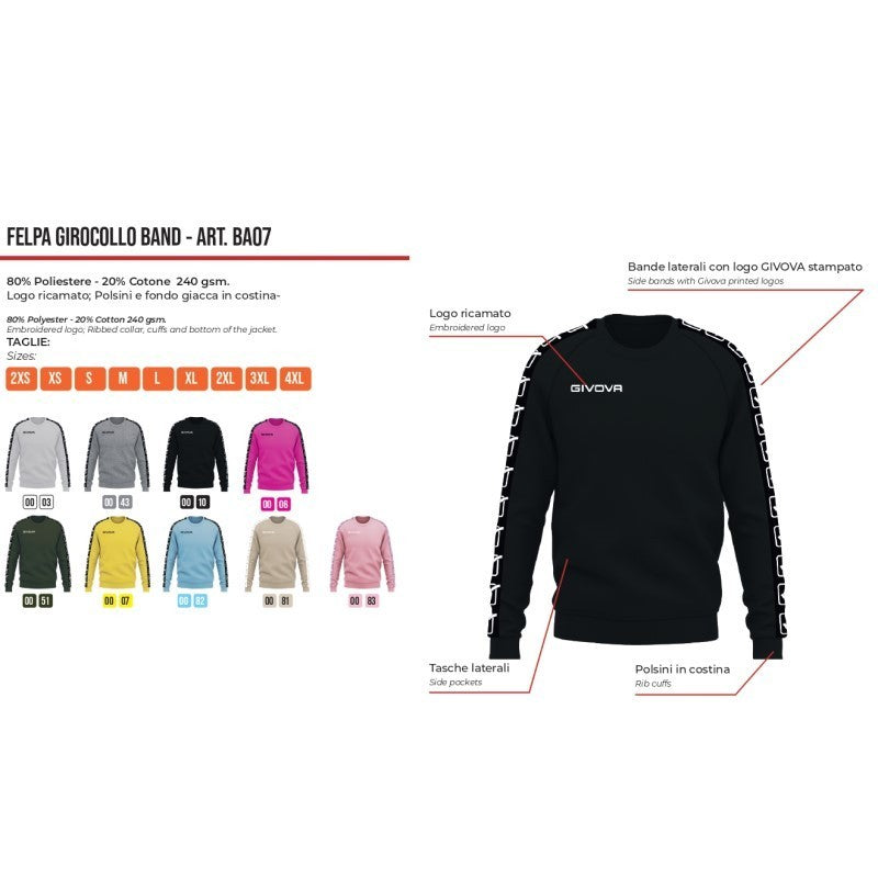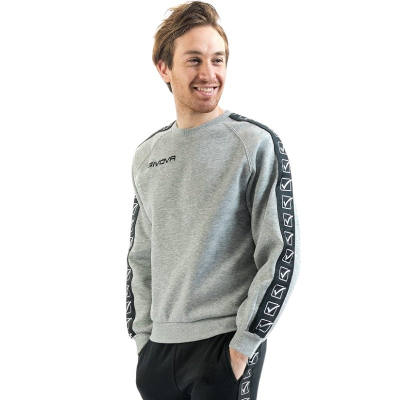 Felpa Givova GIROCOLLO BAND BA07 Cotone Felpato Unisex Grigio Chiaro Nero BA070043