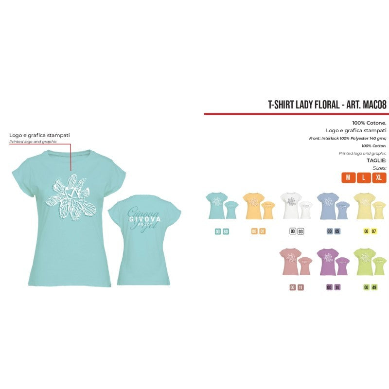 T-Shirt da Donna Givova LADY FLORAL MAC08 Cotone Celeste MAC080005