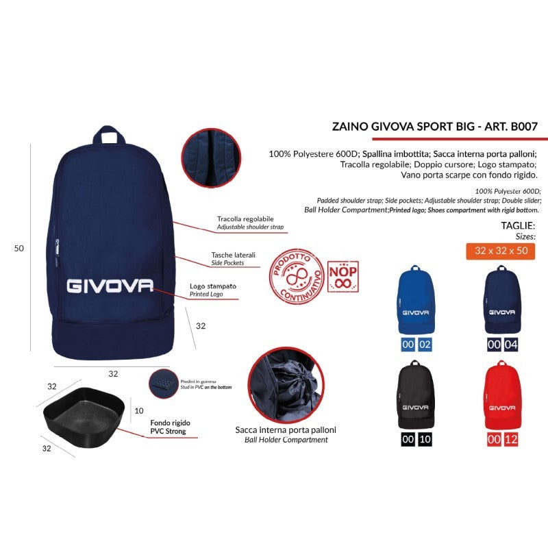 Zaino Adulto Givova Sport Big Blu con Fondo Calcio Fitness Palestra B007BL