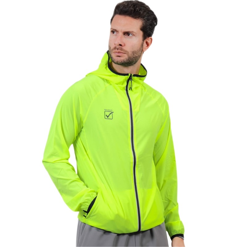 Giacca Antipioggia da Uomo RAIN RUNNING FIT022 Fitness Giallo Fluo