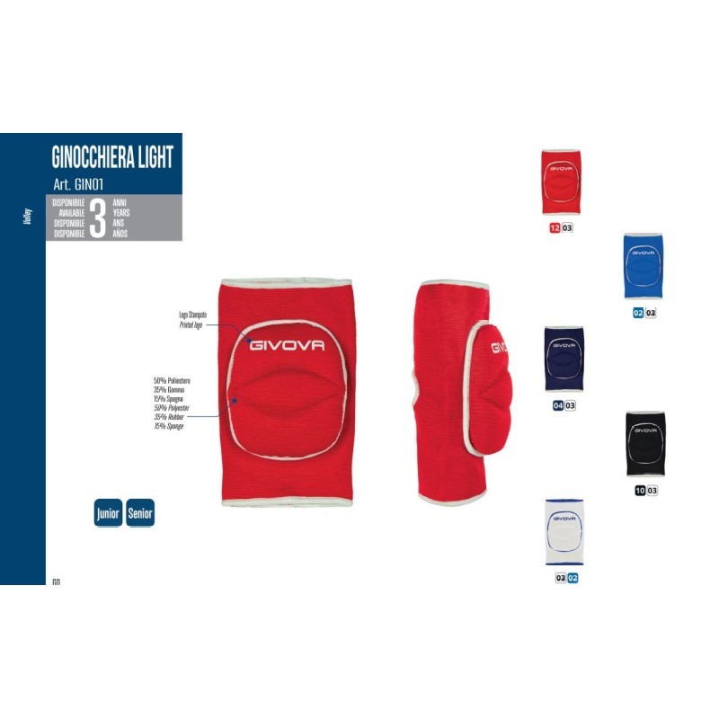 Ginocchiera LIGHT Givova Volley GIN01 Unisex Azzurro Bianco