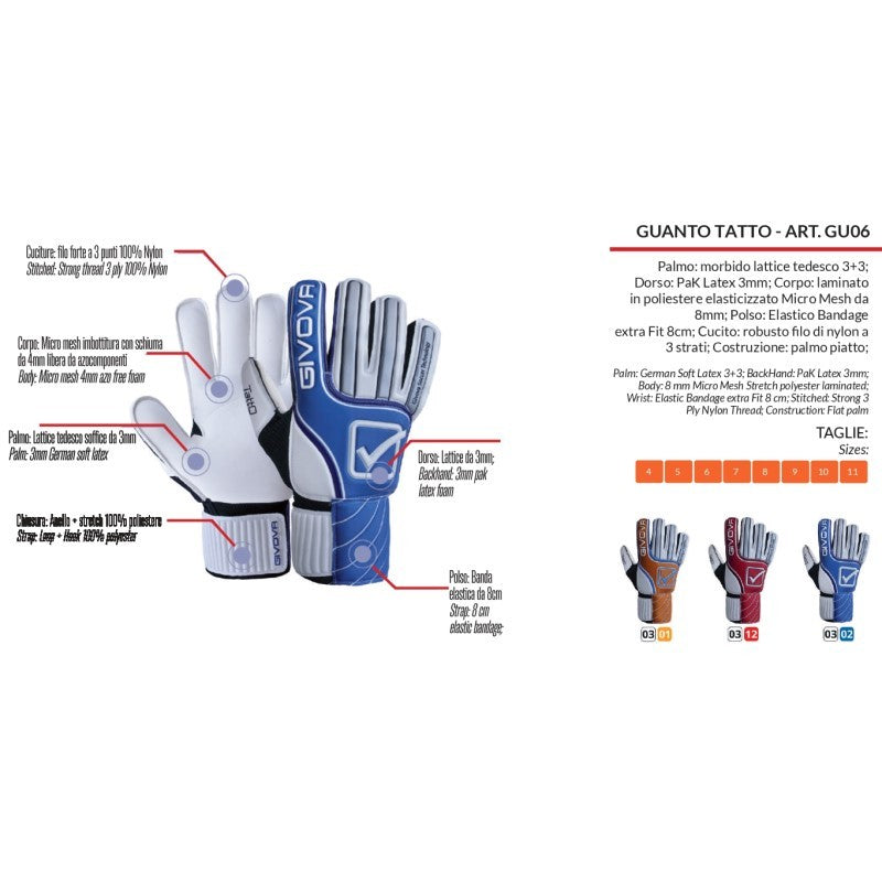 Guanto da Portiere Givova TATTO GU06 Lattice Unisex Bianco Azzurro