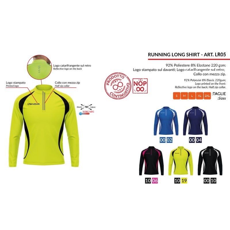 RUNNING SHIRT LONG Givova LR05 Maglia Tecnica Girocollo Unisex Giallo Fluo Nero