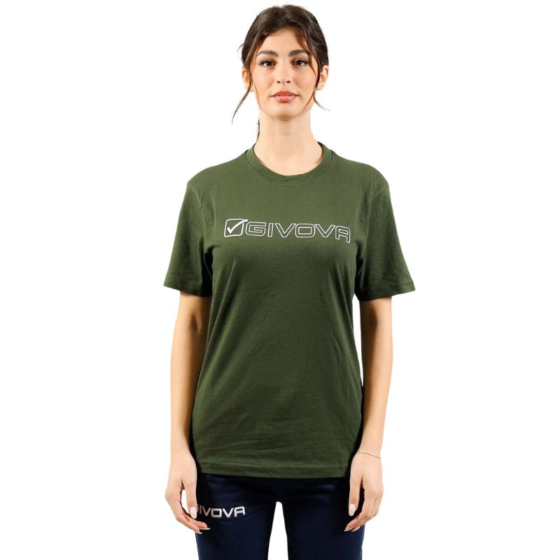 T-Shirt MONDO MA033 Givova Cotone Girocollo Unisex Verde Militare Bianco MA0335103