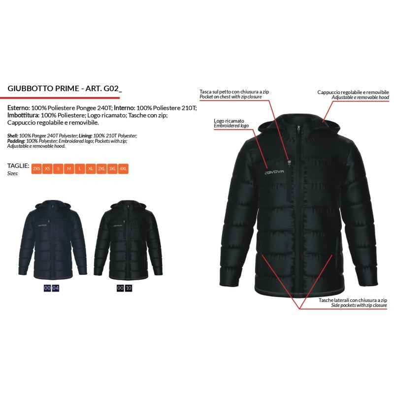 Giubbotto con Cappuccio Givova Prime G026 Unisex Full Zip Nero G0260010