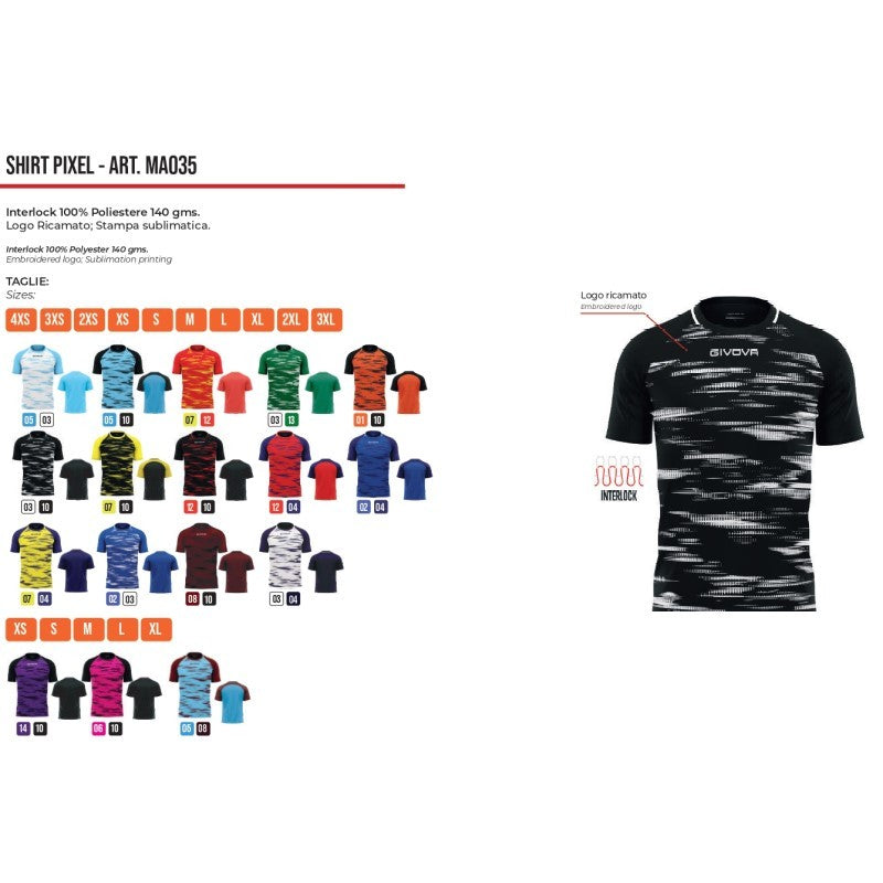 Maglia da Calcio Givova Pixel MA035 Padel Tennis Nero Bianco MA0351003