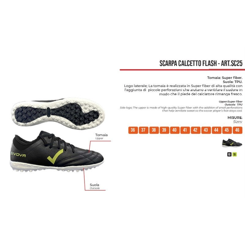 Scarpa da Calcetto Givova Flash SC25 Turf Adulto Nero Giallo Fluo SC251019
