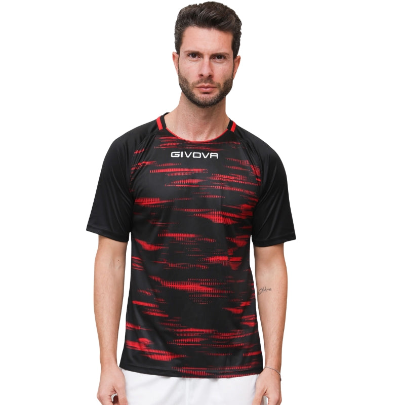 Maglia da Calcio Givova Pixel MA035 Padel Tennis Nero Rosso MA0351012