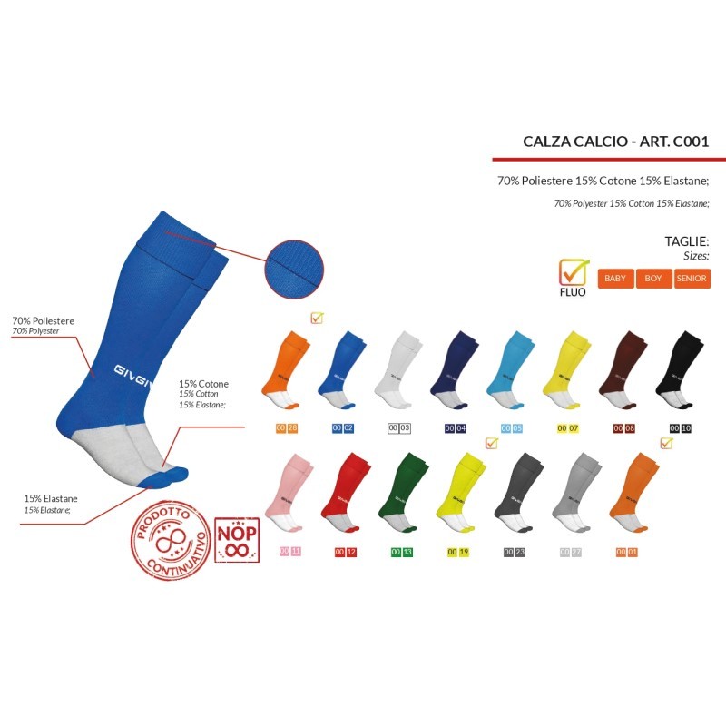 Calzettoni Givova CALZA CALCIO C001 Arancio Fluo Calcetto Basket Sport C0010028