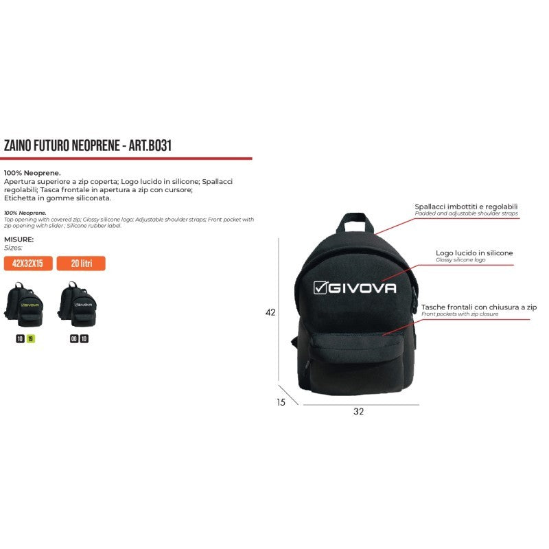 Zaino Futuro Givova in Neoprene B031 Multitasche Unisex Nero Bianco B0311003