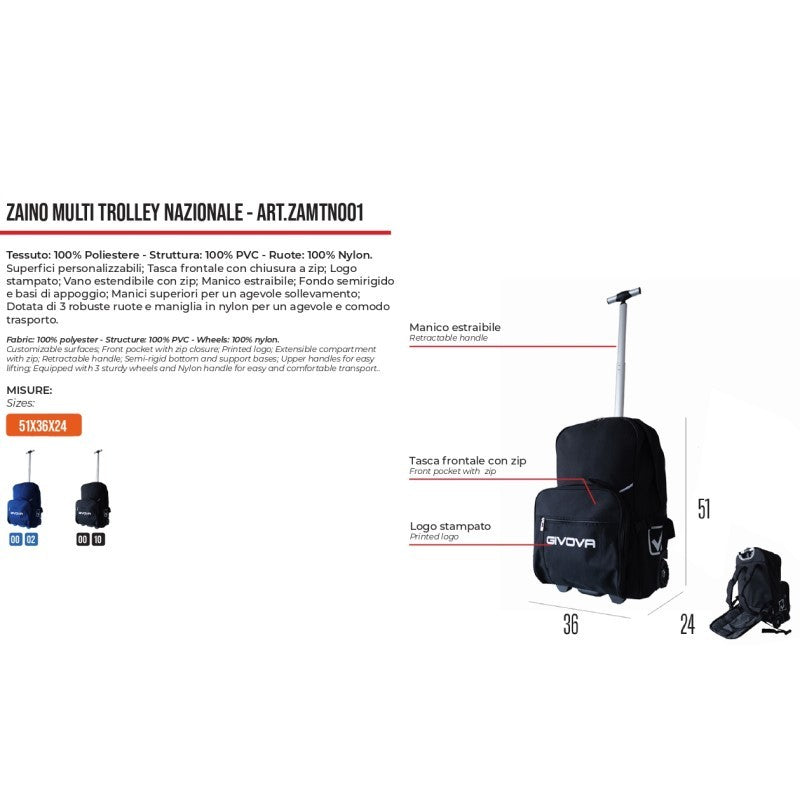 Zaino Givova Multi Trolley Nazionale Nero Tg. Unica ZAMTN0010010