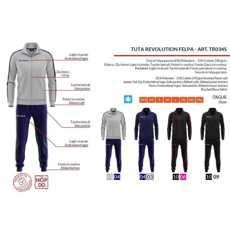 Tuta REVOLUTION FELPA Givova TR034S Unisex Sport Fitness Grigio Blu TR034S4304