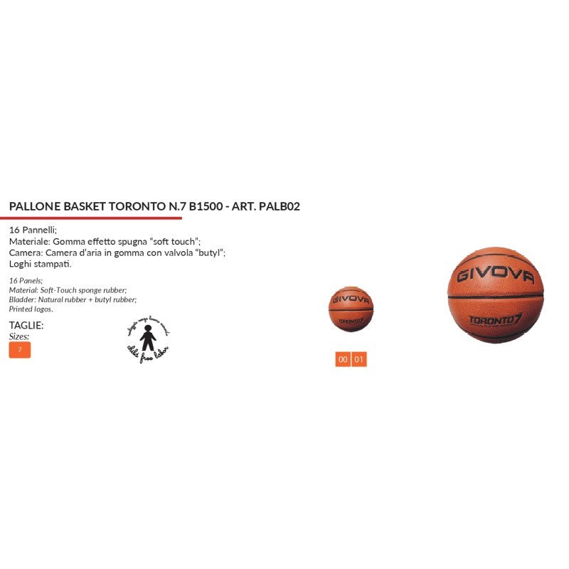 Pallone da Basket Givova Toronto n°7 B1500 Pallacanestro Arancio PALB02