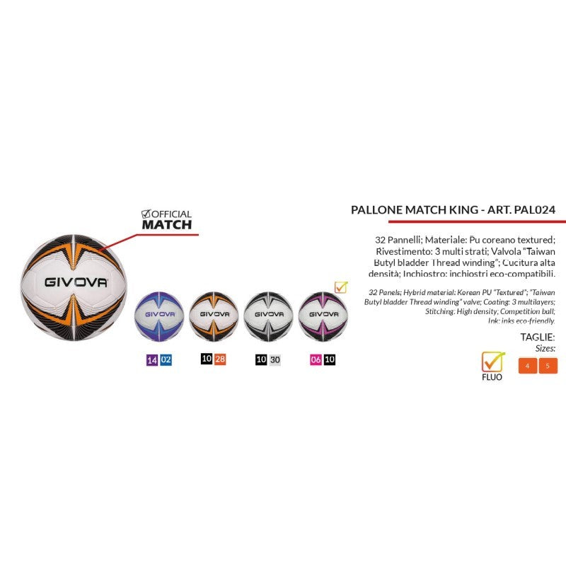 Pallone da Calcio Givova Match King PAL024 Nero Arancio Fluo Calcetto