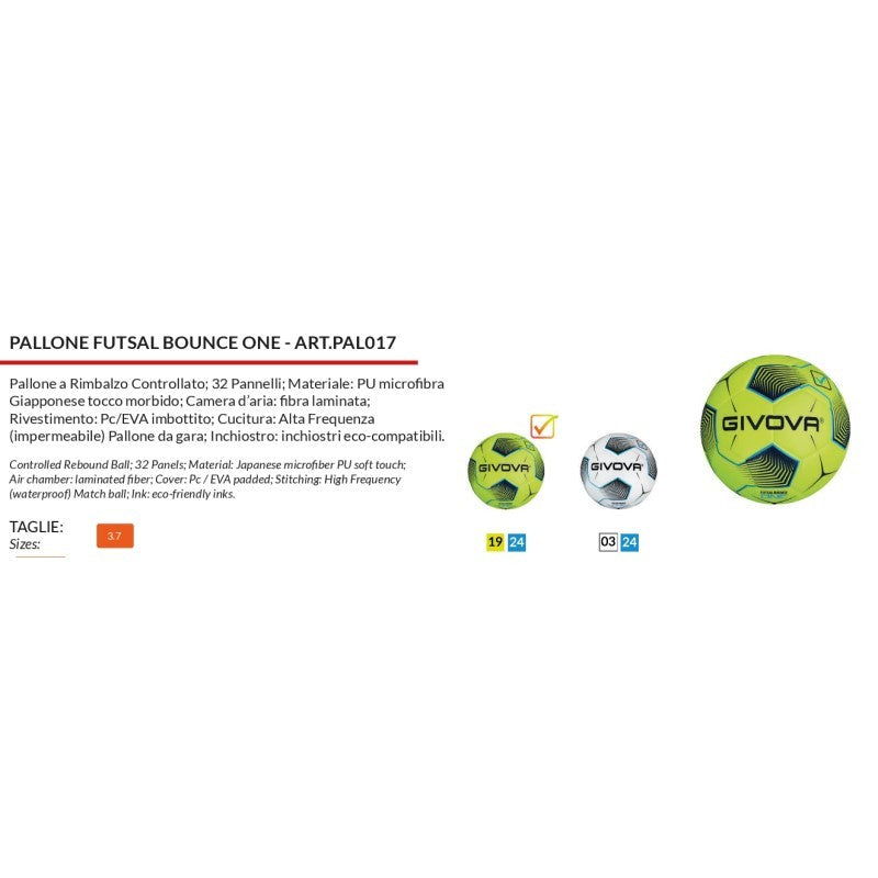 Pallone da Futsal Givova Bounce One Giallo Fluo Turchese n°3.7 Calcetto PAL0171924