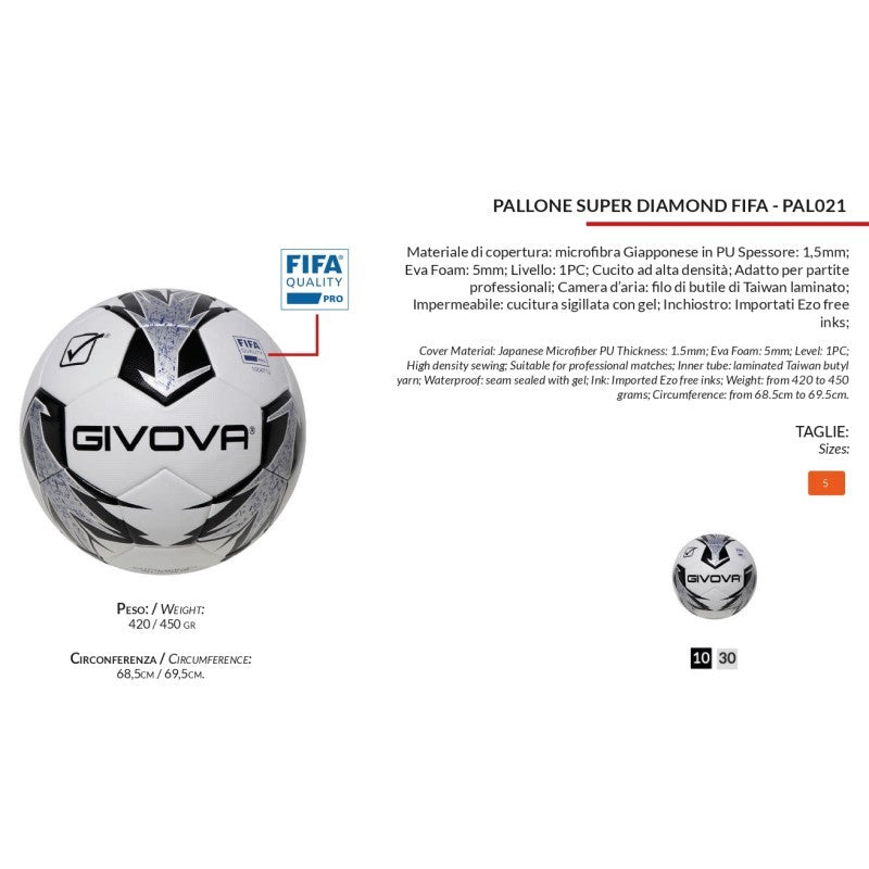 Pallone da Calcio Givova Super Diamond Fifa n°5 Nero Argento PAL0211030