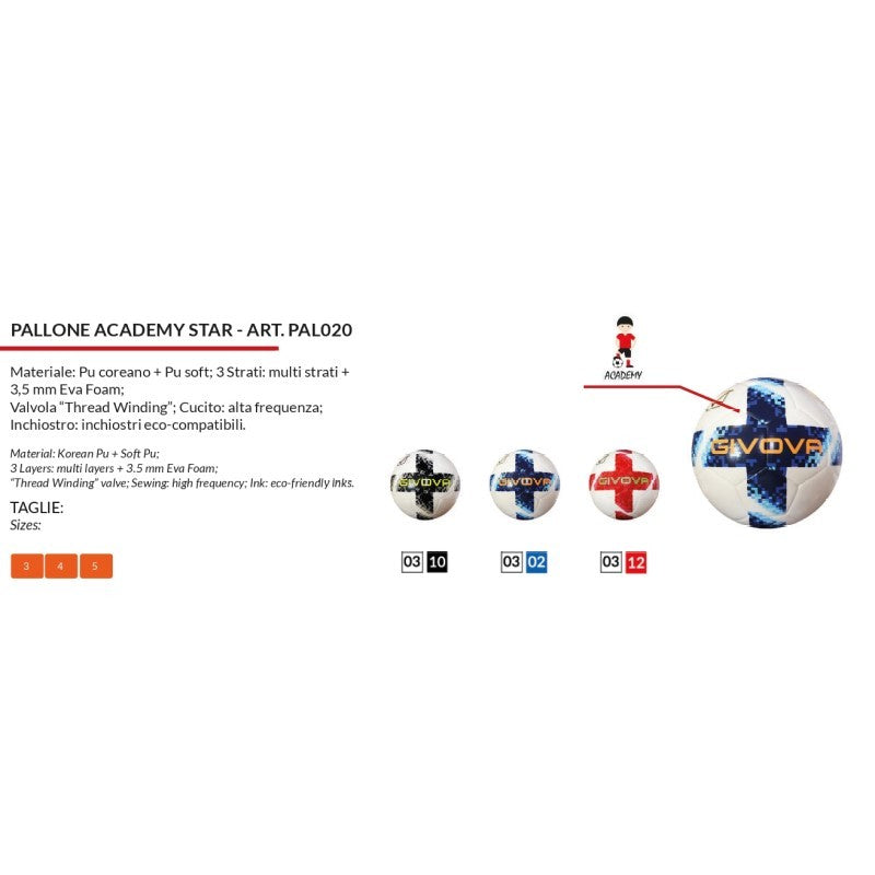 Pallone da Calcio Givova Academy Star PAL020 Bianco Rosso Calcetto