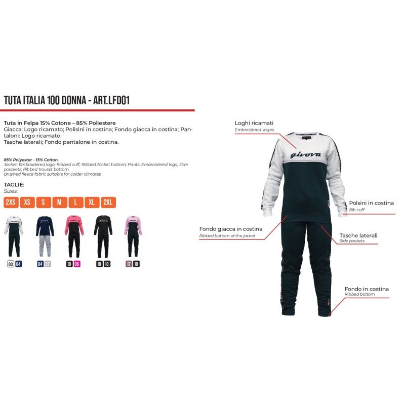Tuta ITALIA 100 DONNA Givova LFD01 Felpata Girocollo Blu Grigio LFD010427