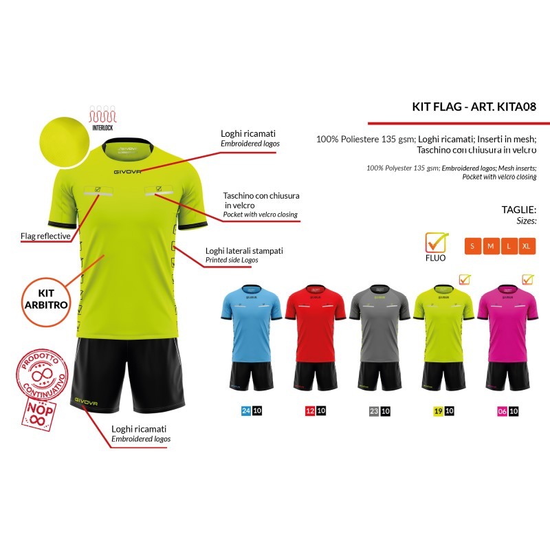 Completino da Arbitro Givova KIT FLAG KITA08 Adulto Unisex Fuxia Nero KITA080610