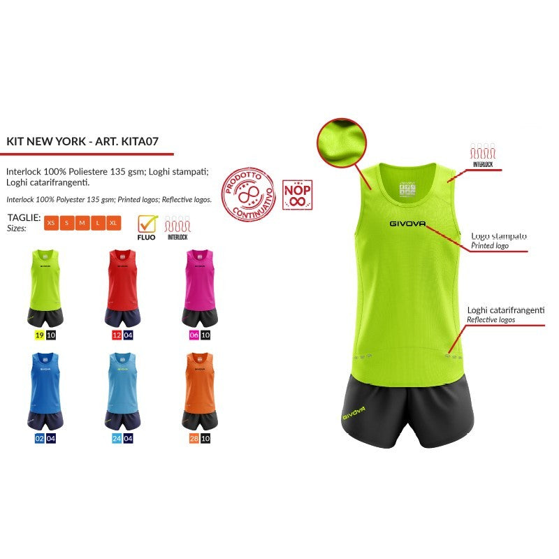 Kit NEW YORK Givova Giromanica Running Corsa Unisex Arancio Fluo Nero KITA07-2810