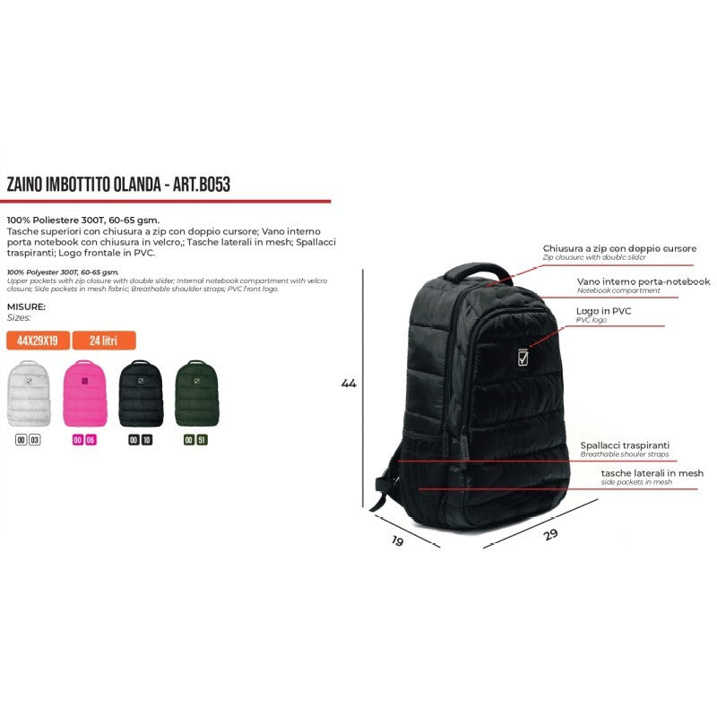 Zaino Imbottito Givova Olanda B053 Unisex Multitasche Nero B0530010