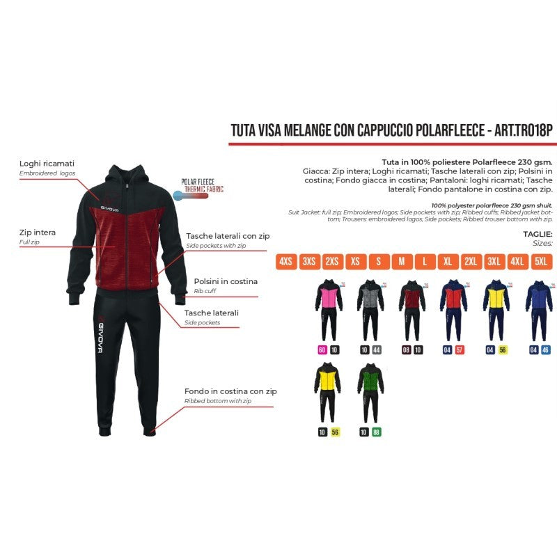 TUTA VISA MELANGE CON CAPPUCCIO POLARFLEECE GRANATA/NERO