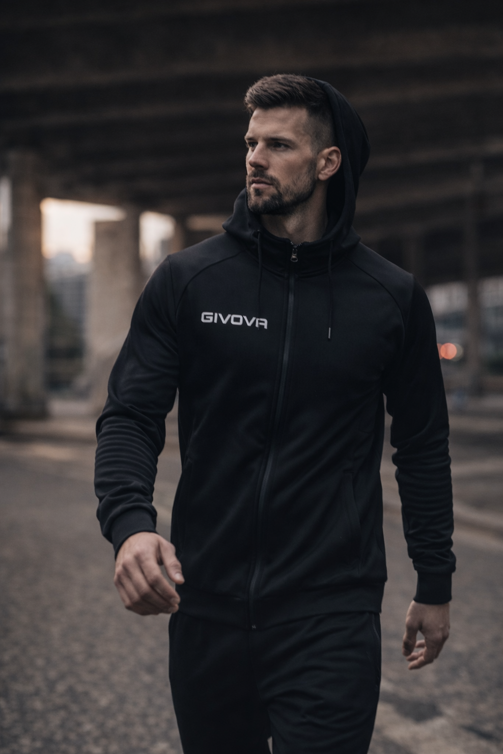 Giacca con cappuccio, tasche e zip;
