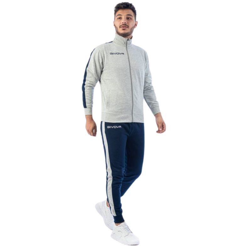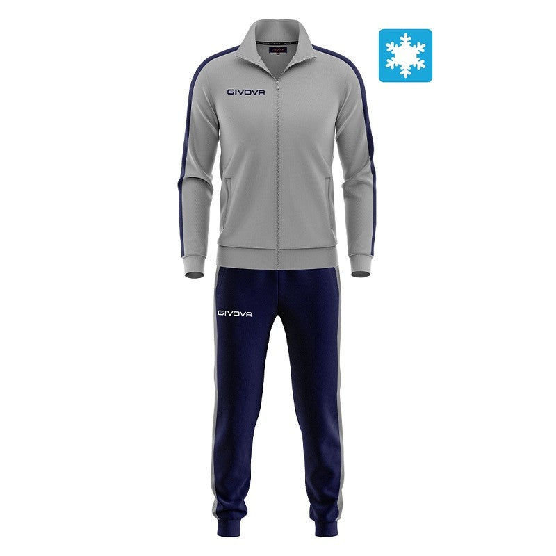 Tuta REVOLUTION FELPA Givova TR034S Unisex Sport Fitness Grigio Blu TR034S4304