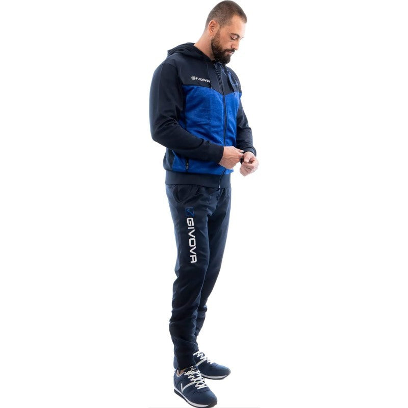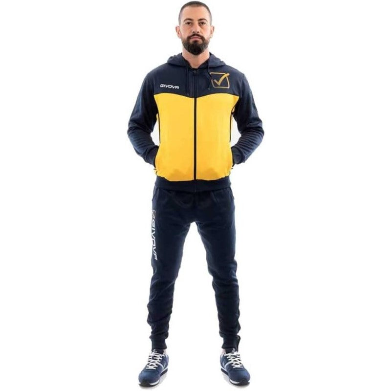 Tuta VISA MELANGE POLARFLEECE Givova TR018P con Cappuccio Blu Giallo TR018P0456
