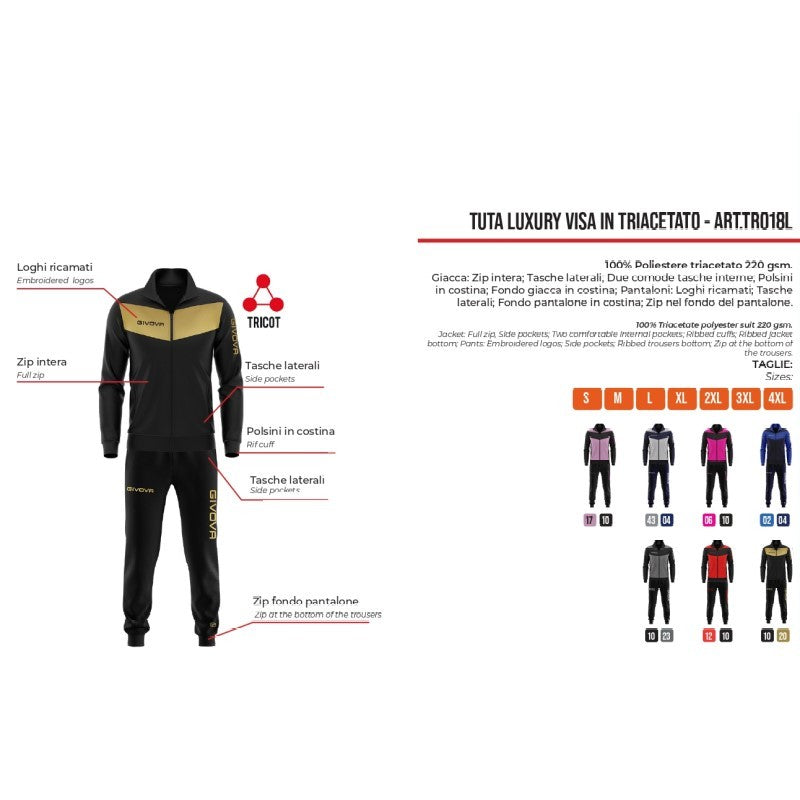 Tuta Givova VISA LUXURY Triacetato TR018L Unisex Nero Oro TR018L1020