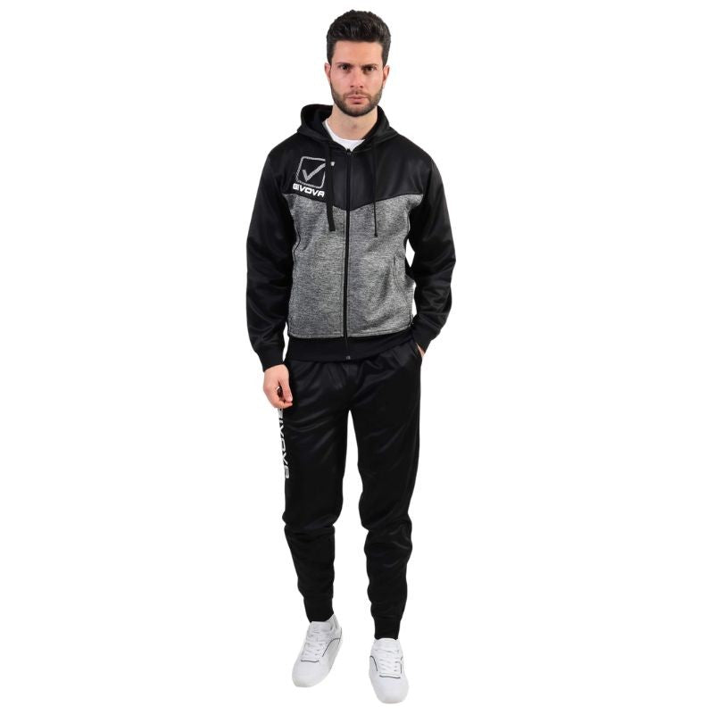 Tuta VISA MELANGE POLARFLEECE Givova TR018P con Cappuccio Nero Grigio TR018P1044