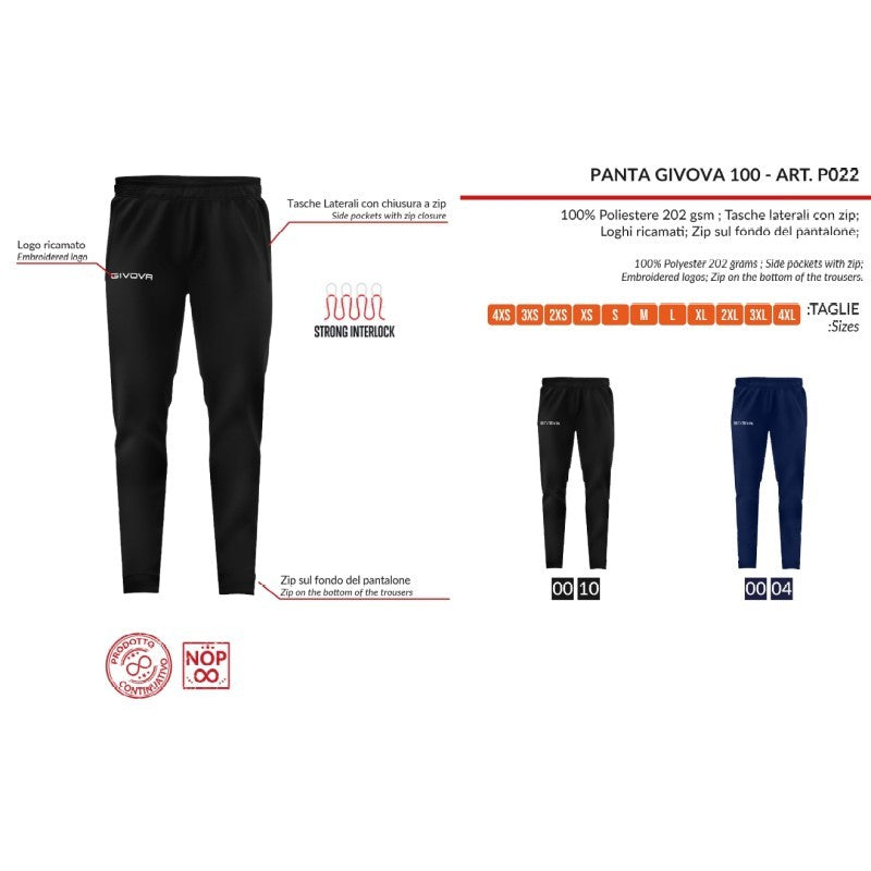 Pantalone Givova PANTA 100 P022 Strong Interlock Sport Palestra Nero P0220010