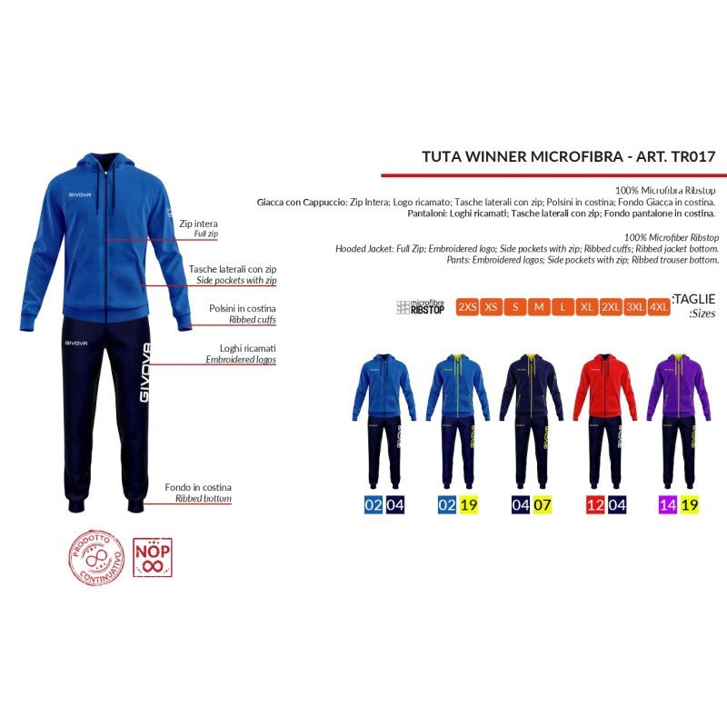 Tuta Givova WINNER MICROFIBRA TR017 Unisex con Cappuccio Rosso Blu TR0171204