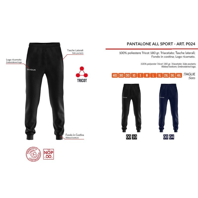 Pantalone All Sport Givova P024 Unisex Triacetato Fitness Nero P0240010