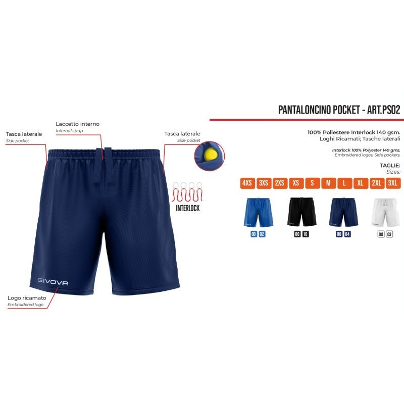 Pantaloncino POCKET Givova Calcio PS02 Unisex Sport Tempo Libero Nero PS02-0010