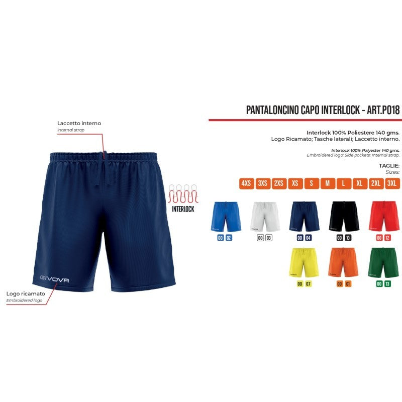 Pantaloncino Givova Capo Interlock P018 Short Azzurro Sport Calcio P0180002