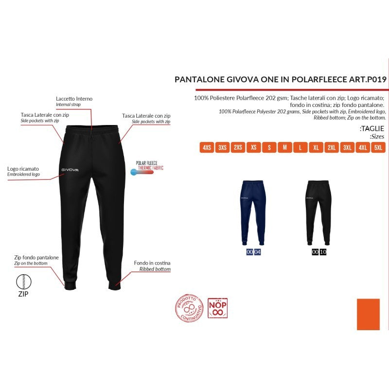 Pantalone Givova ONE in Pile P019 Unisex Allenamento Tempo Libero Nero