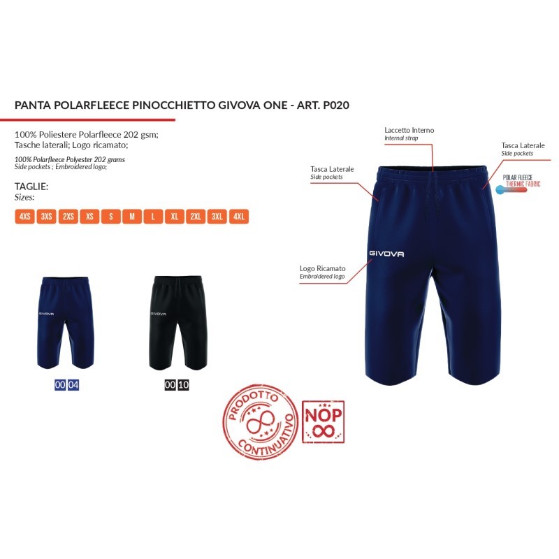 Pinocchietto Givova ONE in Pile P020 Unisex Allenamento Tempo Libero Nero