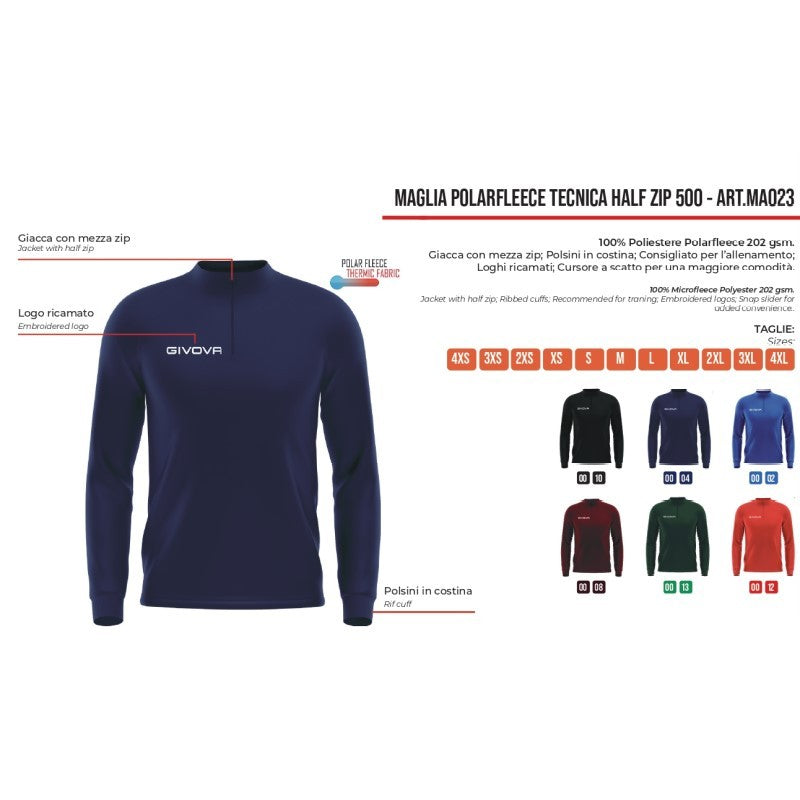 Maglia Tecnica Givova HALF ZIP POLAREFLEECE Fitness Sport Unisex Micropile Azzurro MA0230002