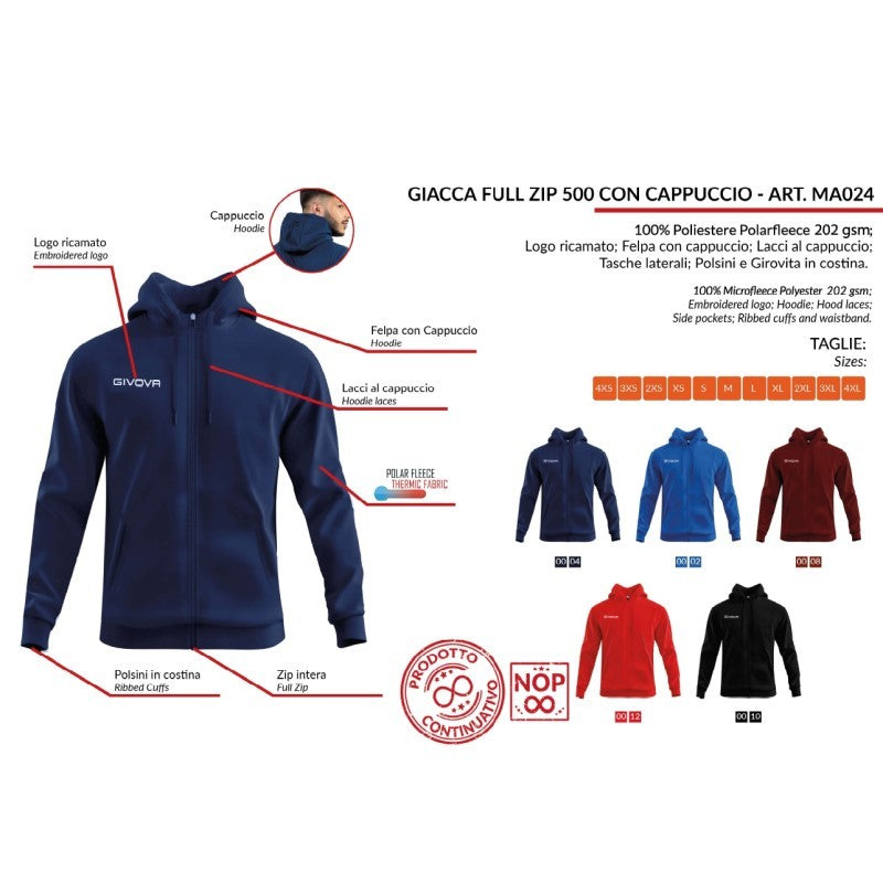 Felpa con Cappuccio Givova MA024 Micropile Full Zip Unisex Rosso MA0240012