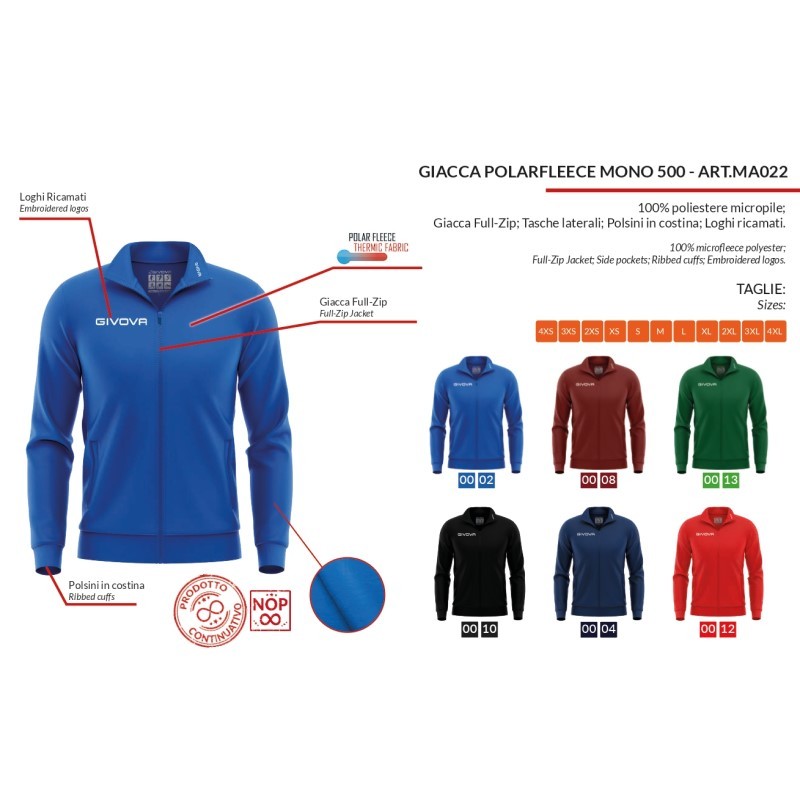 Giacca Polarfleece Mono 500 Givova MA022 FullZip Micropile Unisex Verde MA0220013
