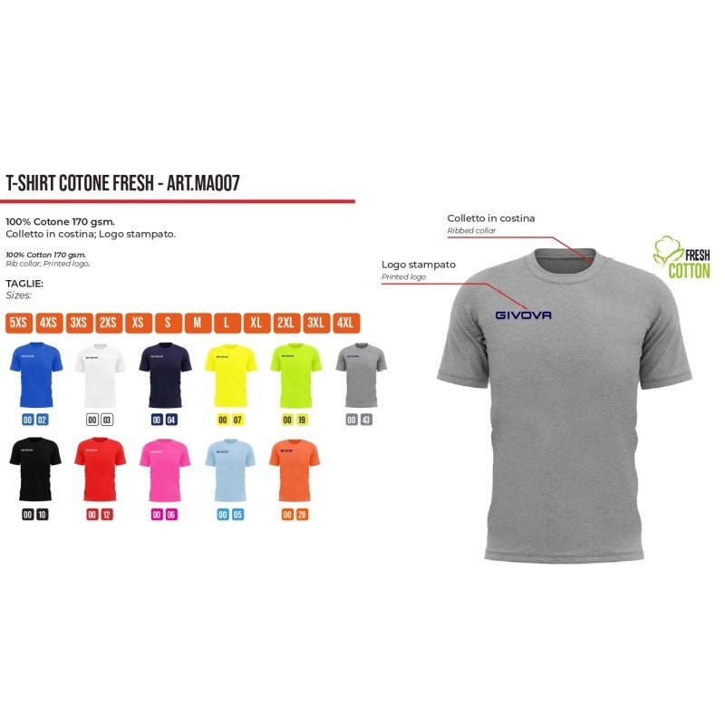 T-Shirt Givova FRESH MA007 Azzurro Cotone Girocollo Unisex Sport Fitness MA0070002
