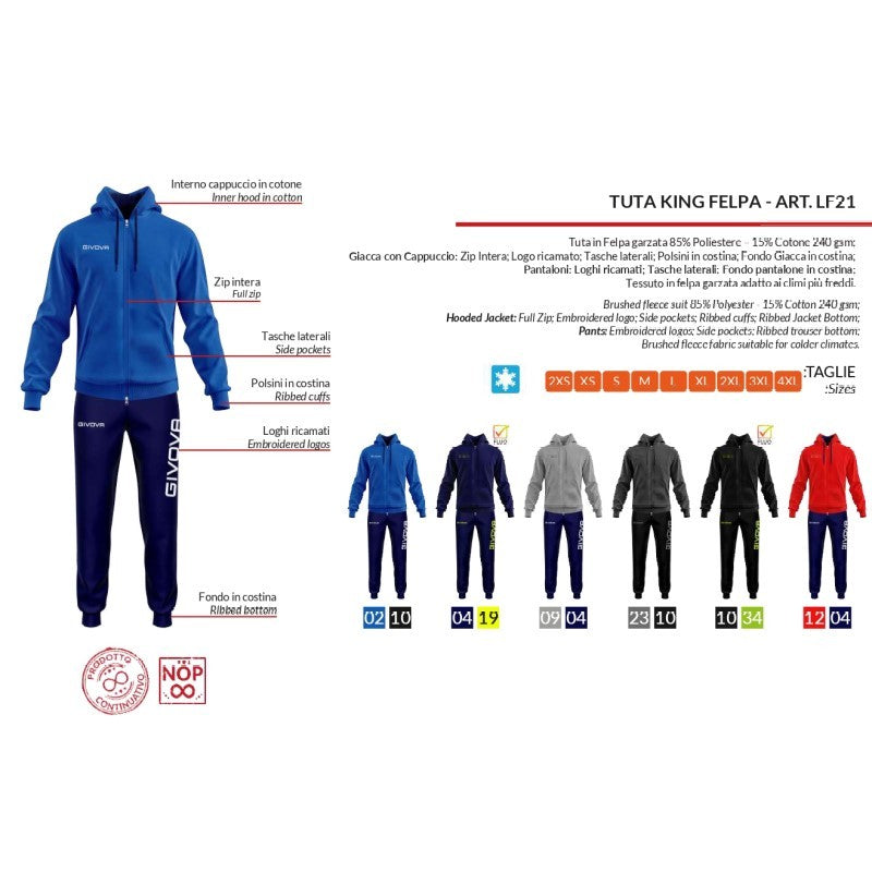 Tuta KING FELPA Givova Garzata con Cappuccio LF21 Unisex Blu Giallo LF210419