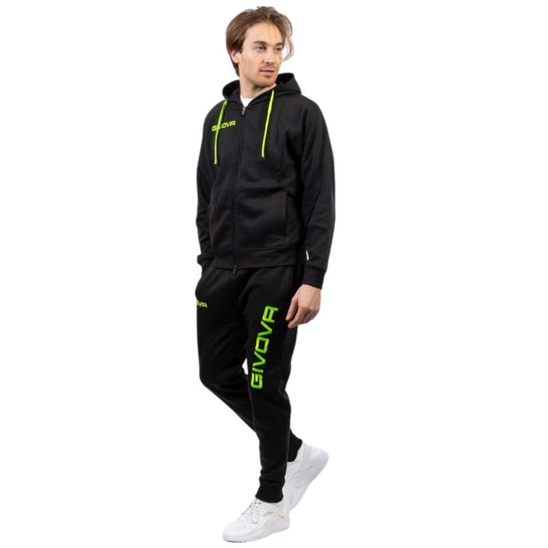 Tuta KING FELPA Givova Garzata con Cappuccio LF21 Unisex Nero Verde Fluo LF211034