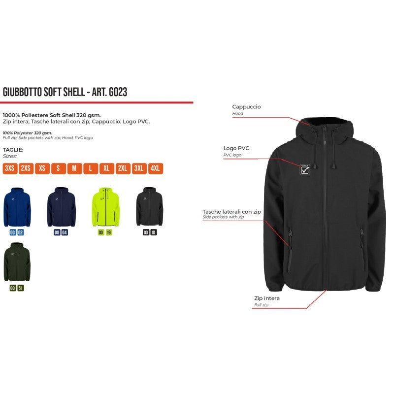 Giubbotto Soft Shell Givova G023 Giacca con Cappuccio Unisex Giallo Fluo Nero G0231910