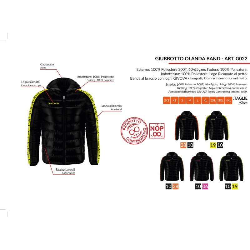 Giubbotto Givova Olanda Band G022 Piumino Adulto Unisex Nero Arancio Fluo G0221028